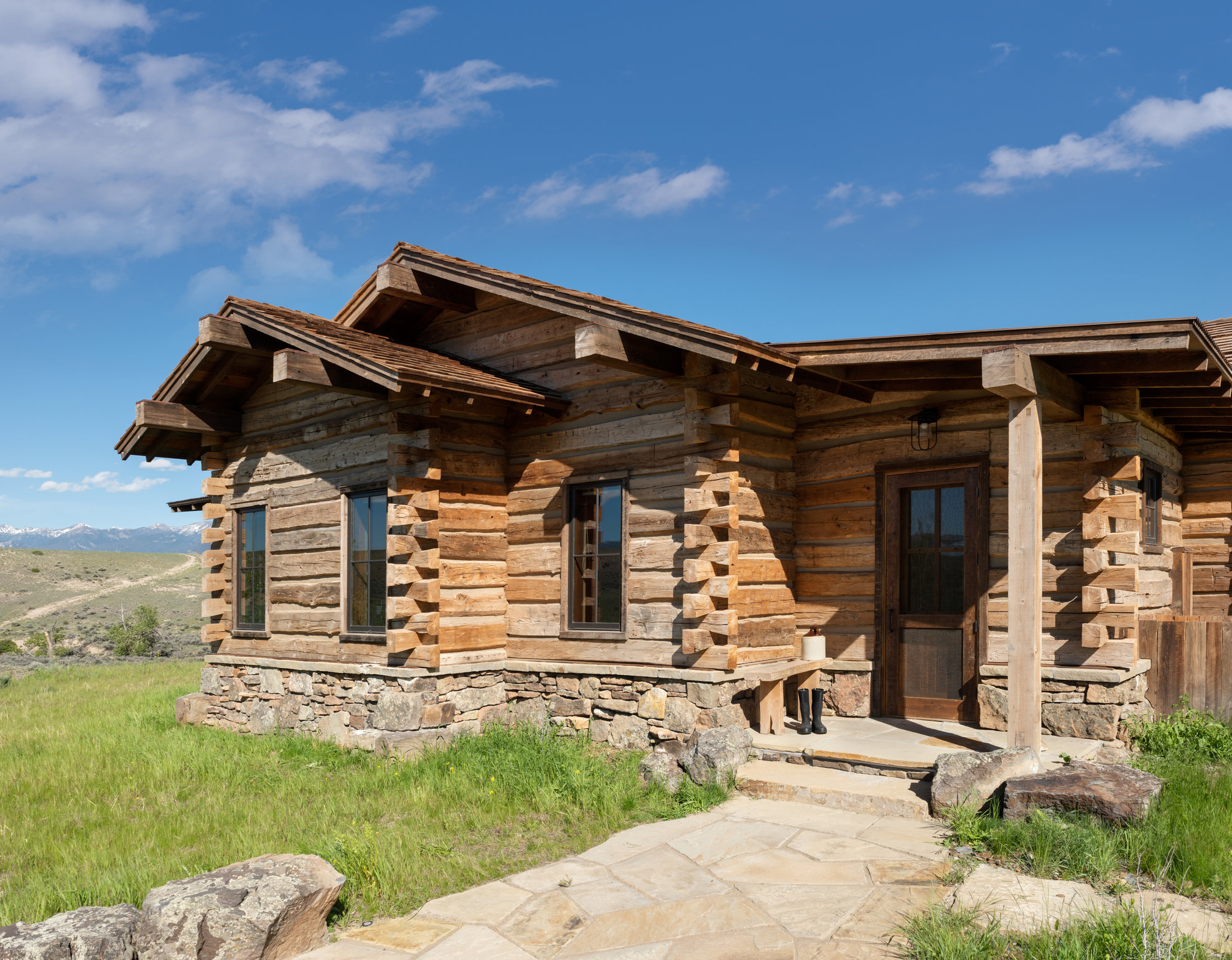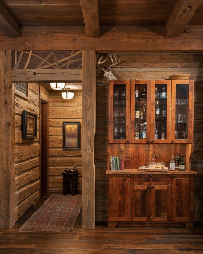 The Fishing Cabin features reclaimed lumber and exposed timber elements supplied by Old World Lumber Company. Built with character-rich wood and traditional construction methods, this rustic fishing cabin blends durability with authentic mountain style. Natural textures, aged timbers, and solid wood details create a warm, functional retreat designed for life on the water.